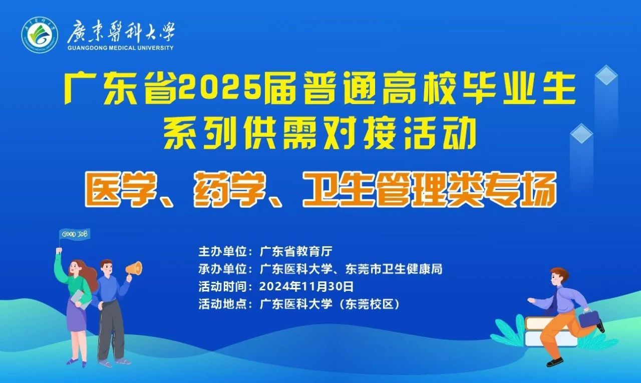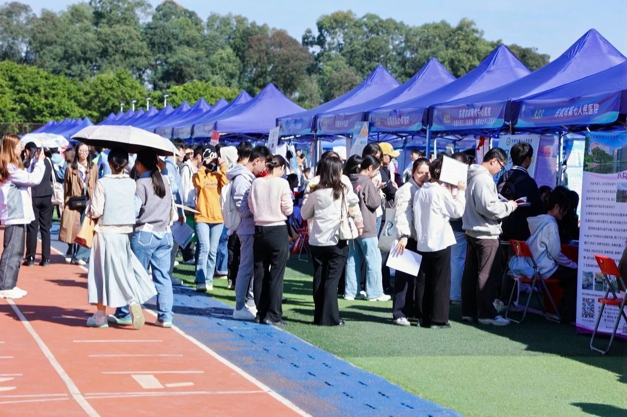 为切实做好2025届毕业生就业服务工作,11月30日,由广东省教育厅主办,广东医科大学、东莞市卫生健康局承办的广东省2025届普通高校毕业生系列供需对接活动——医学、药学、卫生管理类专场在广东医科大学东莞校区体育场举行。 本场对接活动汇聚了350余家用人单位,来自广州、深圳、珠海、东莞、佛山等地的卫健局、医院、社区卫生服务中心等多种类型的机构,它们与医学检验与诊断、医疗器械研发、医疗电子技术等多个领域的上市公司和优质企事业单位共同提供了丰富的就业资源,共计近2230个就业岗位,招聘人数超过1.18万余人。