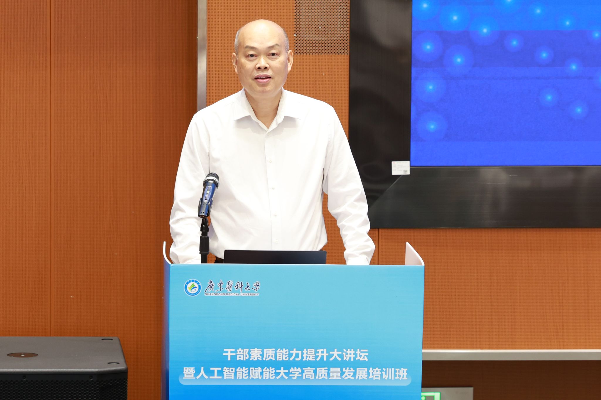 培训班的主要目的是进一步提升学校各级干部数智化思维、创新能力和管理治理水平,进一步激发拥抱智能时代,深化改革创新,强化使命担当,强化战略思维,强化发展担当,推动学校人工智能健康有序发展和应用,加快实现学校创新发展、特色发展、内涵式高质量发展。全体校领导、全体中层干部、直属附属医院领导班子成员,省级以上和学校主要的科研平台的负责人以及高层次人才代表参加培训会。培训班由学校党委副书记、纪委书记,广东省监委驻广东医科大学监察专员向献兵和党委常委、副校长曾志嵘主持。
