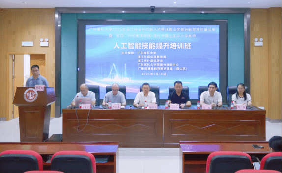 2025年5月15日,广东医科大学2025年全口径全方位融入式帮扶霞山区基础教育高质量发展暨“双百”行动教学帮扶——湛江市霞山区中小学学科教师人工智能技能提升培训在霞山区教师发展中心正式开班。培训由我校网络与信息中心统筹,湛江市计算机学会承办,旨在通过“ai 教育”赋能并推动霞山区基础教育数字化转型。