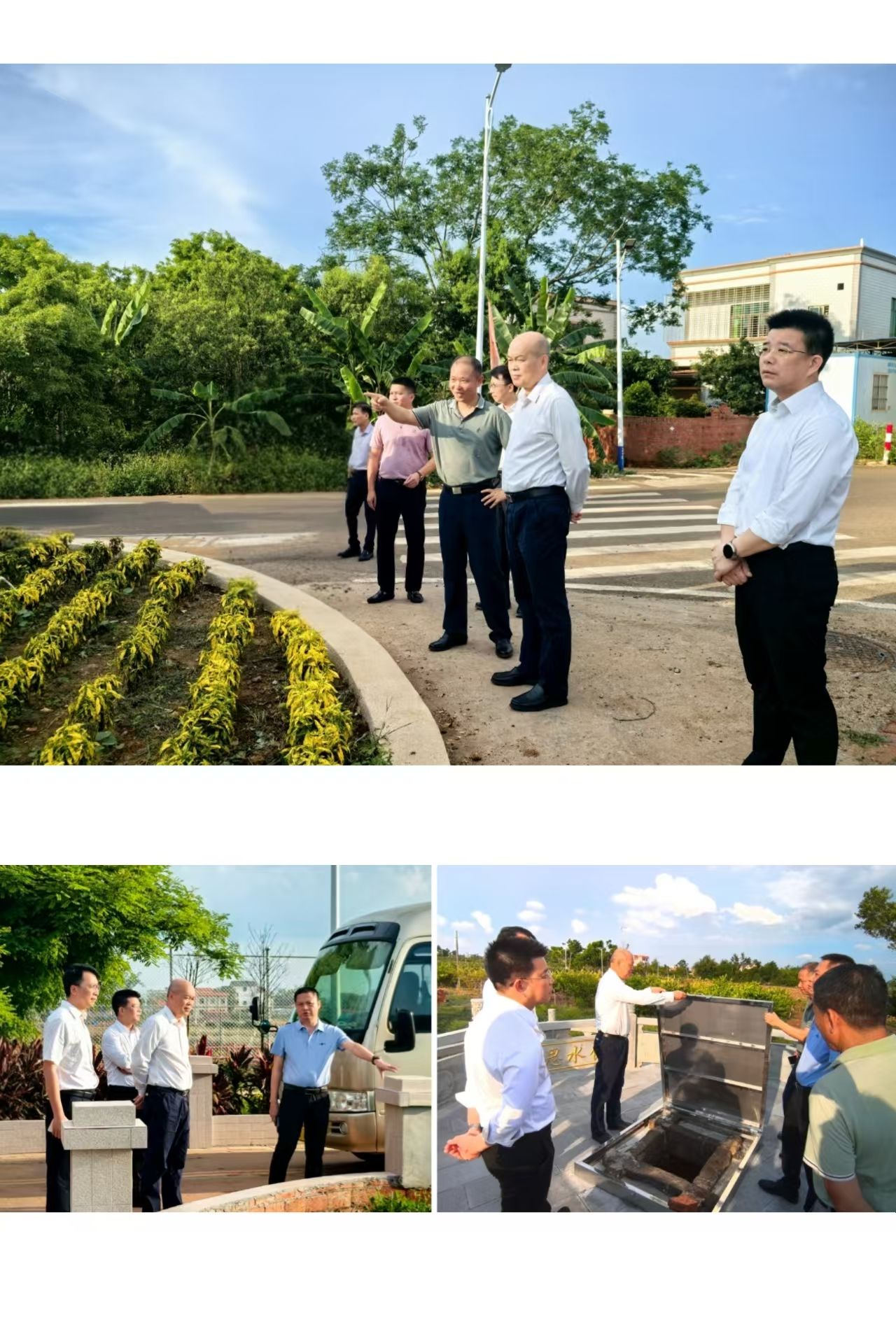 随后,卢景辉一行前往西连镇罗宅村绿美生态小公园考察。西连镇党委书记梁汉飞介绍,该公园是西连镇美丽圩镇建设“七个一”工程中的绿美生态小公园。2024 年,通过“政府引导 央企助力 群众响应”多方合作机制,该公园顺利落成,为当地群众提供了一个集健身与休闲于一体的优质场所。漫步公园中,卢景辉一行切实感受到了乡村建设给群众生活带来的积极变化。