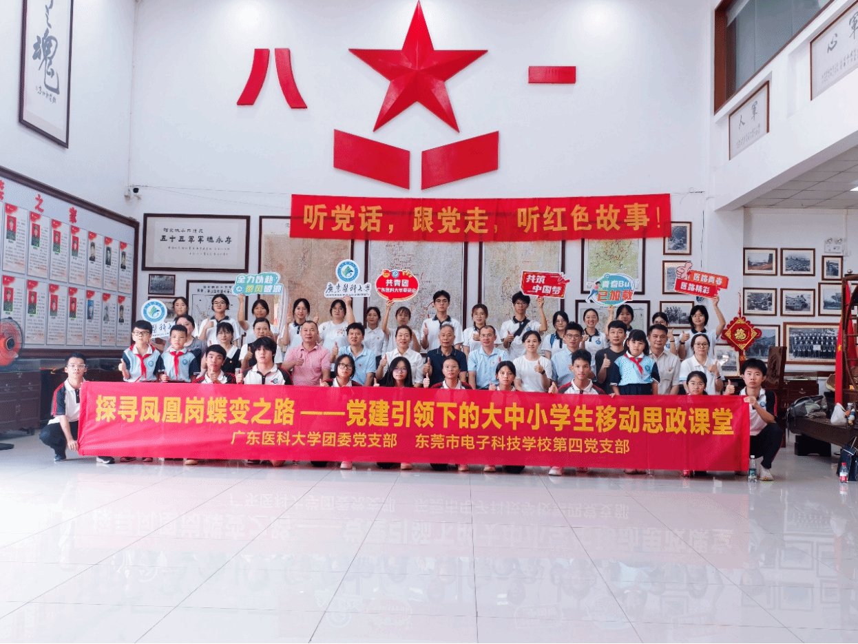 为推动“百千万工程”在教育领域的实践落地,助力典型村建设,同时创新思政教育形式,促进大中小学生全面成长,2025年6月19日,广东医科大学团委党支部联合东莞市电子科技学校第四党支部、塘厦镇第二小学在东莞市塘厦镇凤凰岗社区,开展了“探寻凤凰岗蝶变之路——党建引领下的大中小学生移动思政课堂”活动,来自三所学校的师生代表齐聚一堂,参加了这场别开生面的思政学习之旅。