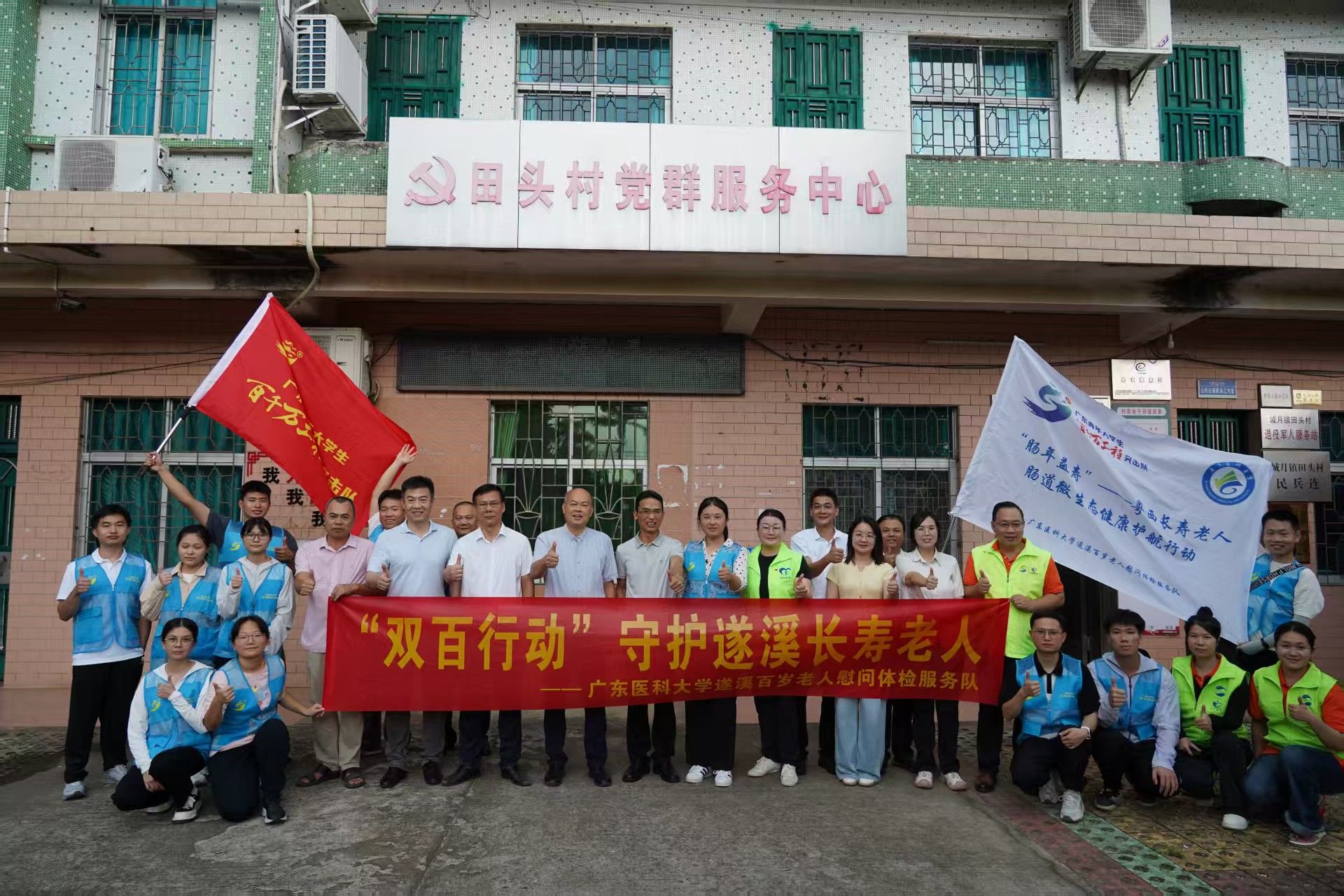 目前,遂溪县户籍中90岁及以上人口超过6700人。这天遂溪百岁老人慰问体检服务队在为102岁的何玉珍老人进行健康体检、问卷调查及健康咨询服务。这支服务队含“研”量非常高,由李雪萌博士、崔理立研究员和杨宇主任医师指导,采取“医学硕博士领队 本科生实践”的模式,临床医学、生物技术、海洋药学等多专业协同,不仅为老人建立个性化健康档案,更为长寿健康研究积累了大量宝贵的一手数据。团队作为“双百行动”专项实践队,与遂溪县团委结对共建,加速科研成果转化应用。日前以“百岁老人血清代谢组和微生物组分析揭示色氨酸相关代谢物对健康长寿的促进作用”为题在国际微生物学领域学术期刊发表了文章。