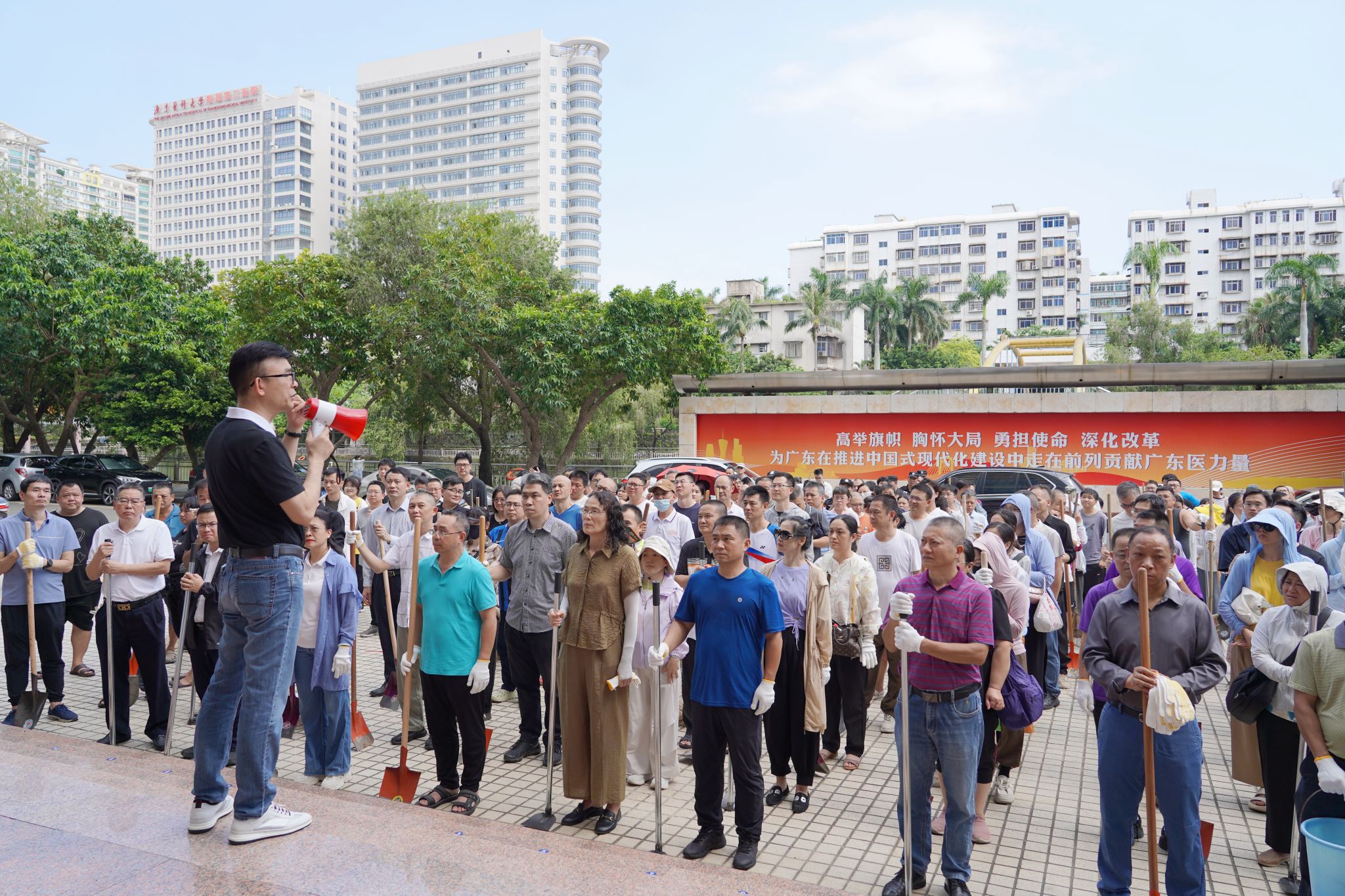 为有效遏制基孔肯雅热和登革热等蚊媒传染病的传播扩散,2025年8月8日至9日,广东医科大学湛江、东莞两校区开展爱国卫生运动统一行动,发动400多名在校师生参与校园环境整治。学校党委副书记黄达海参加并作动员讲话,以实际行动引领全校师生共同防控,切实保障广大师生的身体健康和校园安全稳定。