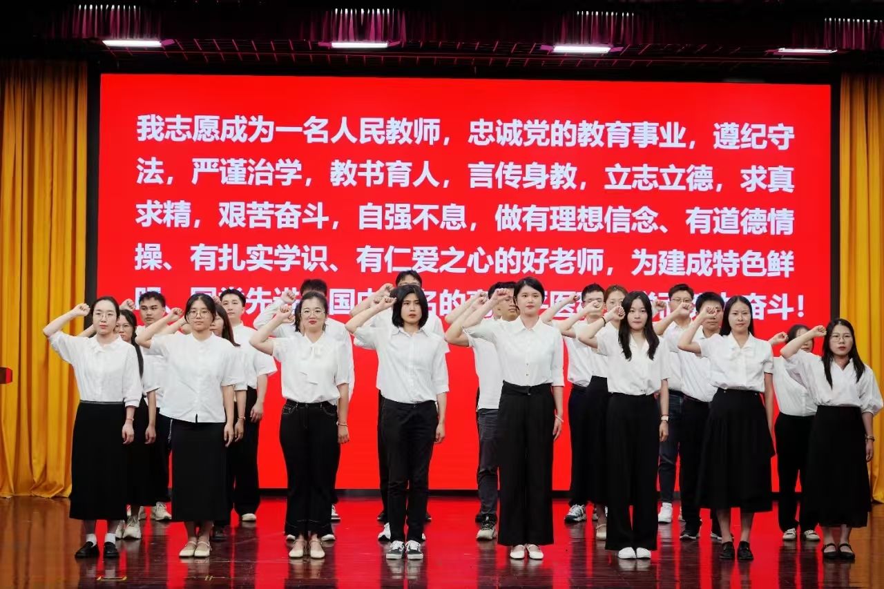在表彰大会上,也进行了新进教师庄严宣誓:“我志愿成为一名人民教师,忠诚党的教育事业,遵纪守法,严谨治学,教书育人,言传身教,立志立德,求真求精,艰苦奋斗,自强不息,做有理想信念、有道德情操,有扎实学识、有仁爱之心的好老师,为建成特色鲜明、同类先进,国内知名的高水平医科大学而努力奋斗。”(文、图/宣传部 审核/谢炯明 复核/周圆 审发/裴金涛)