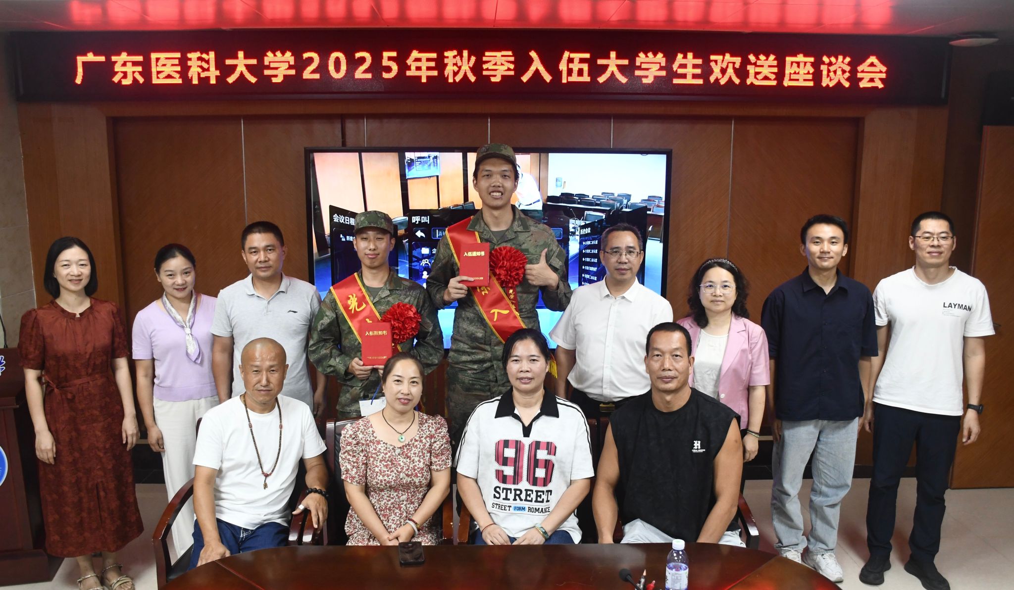 近日,广东医科大学2025年秋季入伍大学生欢送座谈会在东莞、湛江两校区举行。学校武装部、各学院党委、辅导员代表和入伍学生家长共同为即将踏上强军征程的新兵战士们送上母校的殷切嘱托与美好祝福。