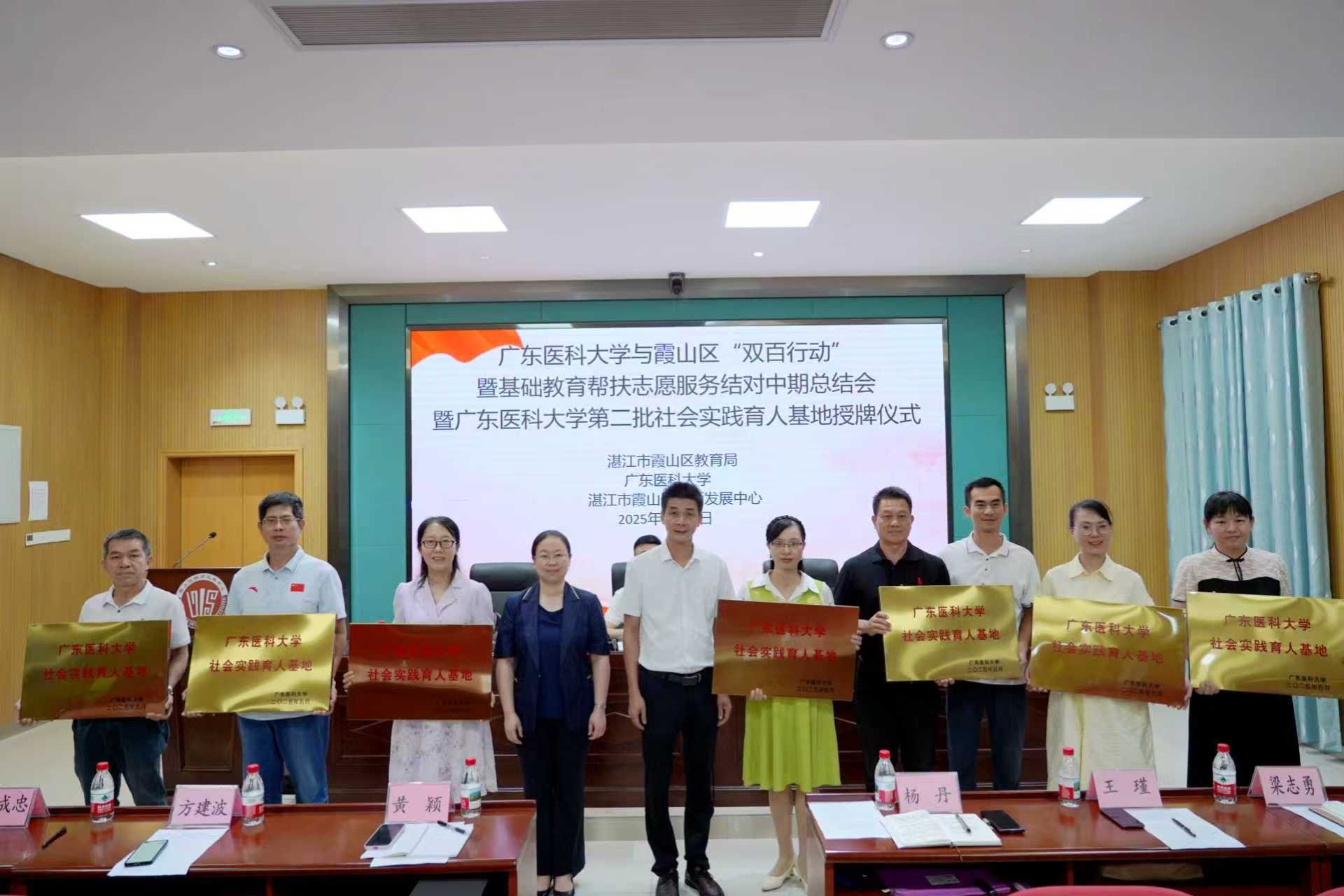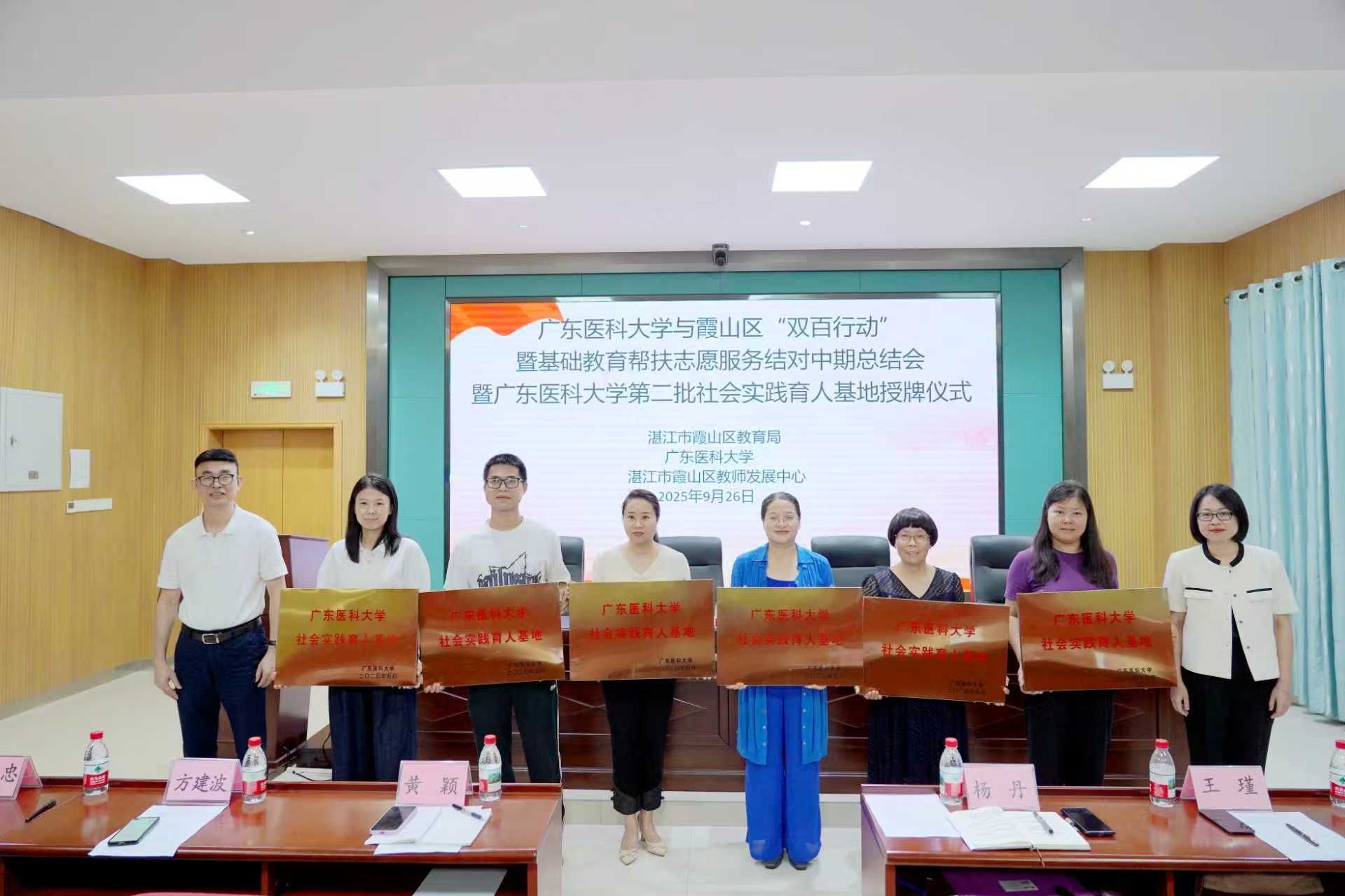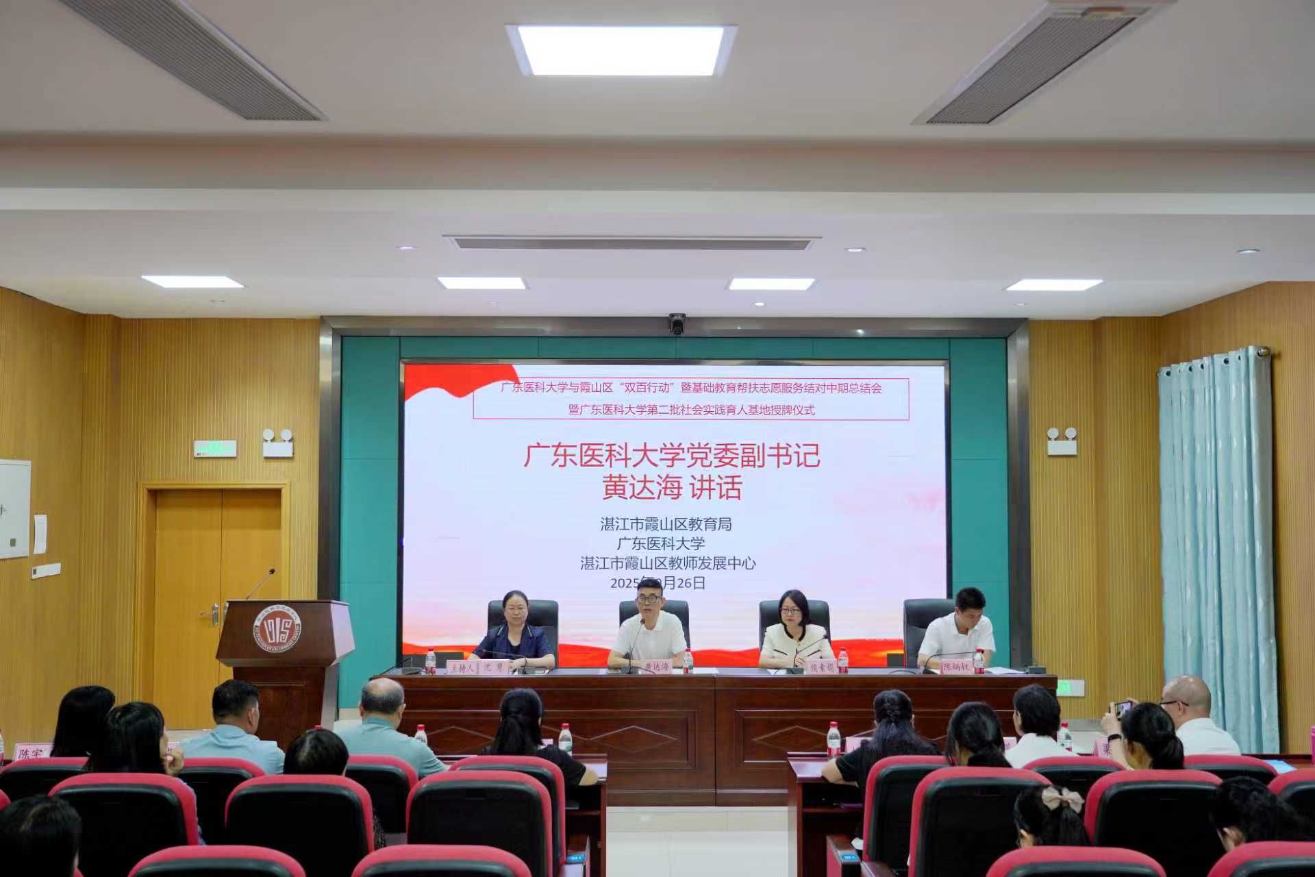 9月26日下午,广东医科大学与湛江市霞山区“双百行动”暨基础教育帮扶志愿服务结对中期总结会暨广东医科大学第二批社会实践育人基地授牌仪式在霞山区教师发展中心举行,学校党委副书记黄达海,霞山区委常委、副区长侯素娟出席会议。会议由霞山区教育局党组成员副局长沈慧主持。