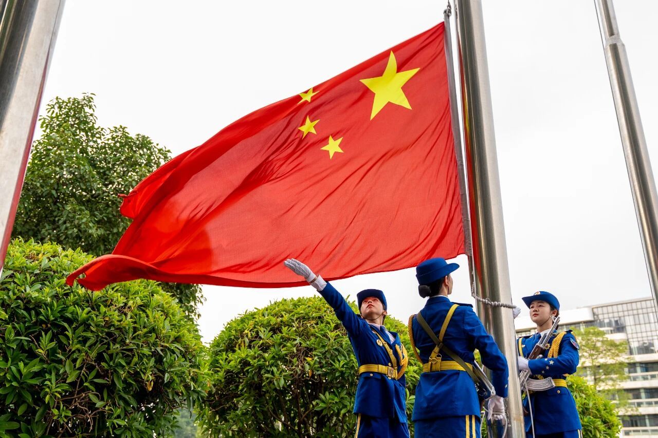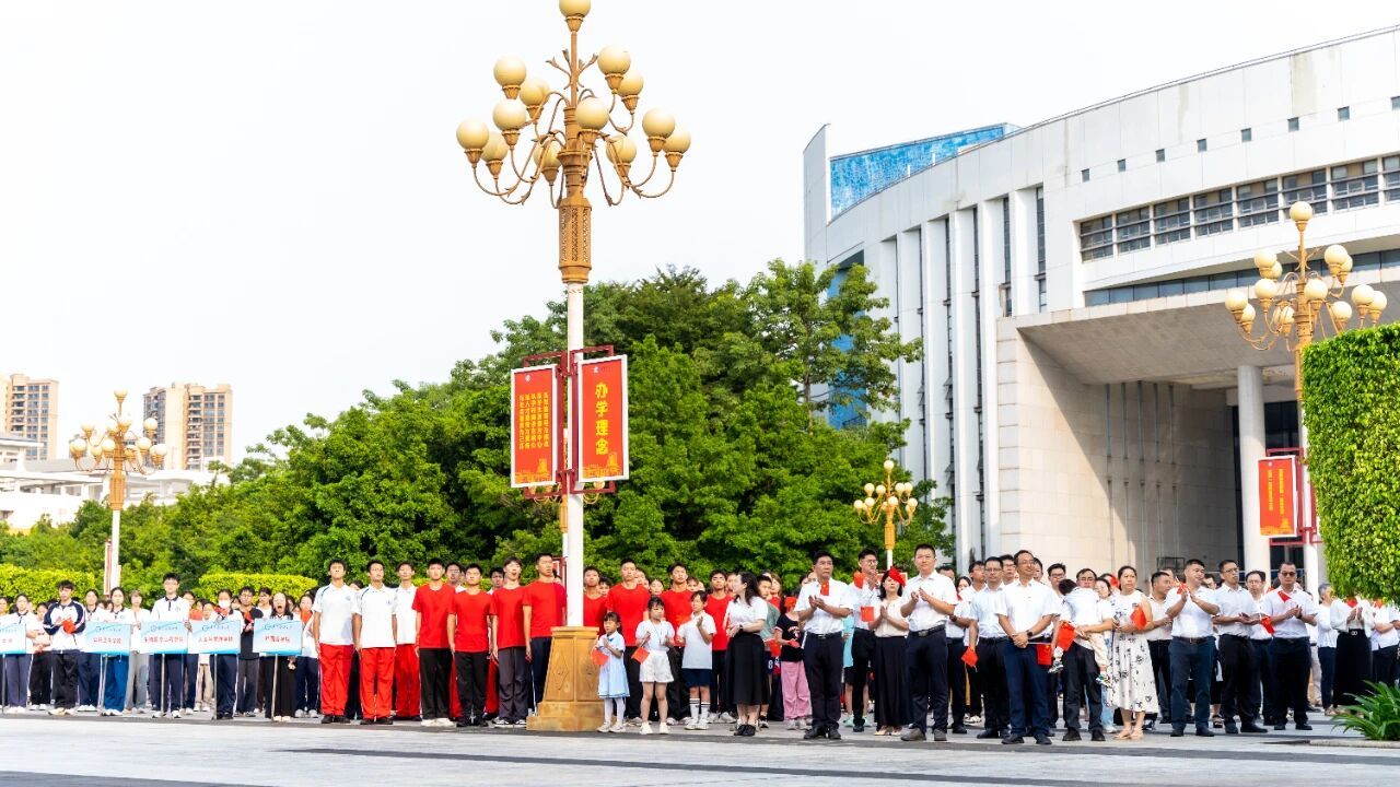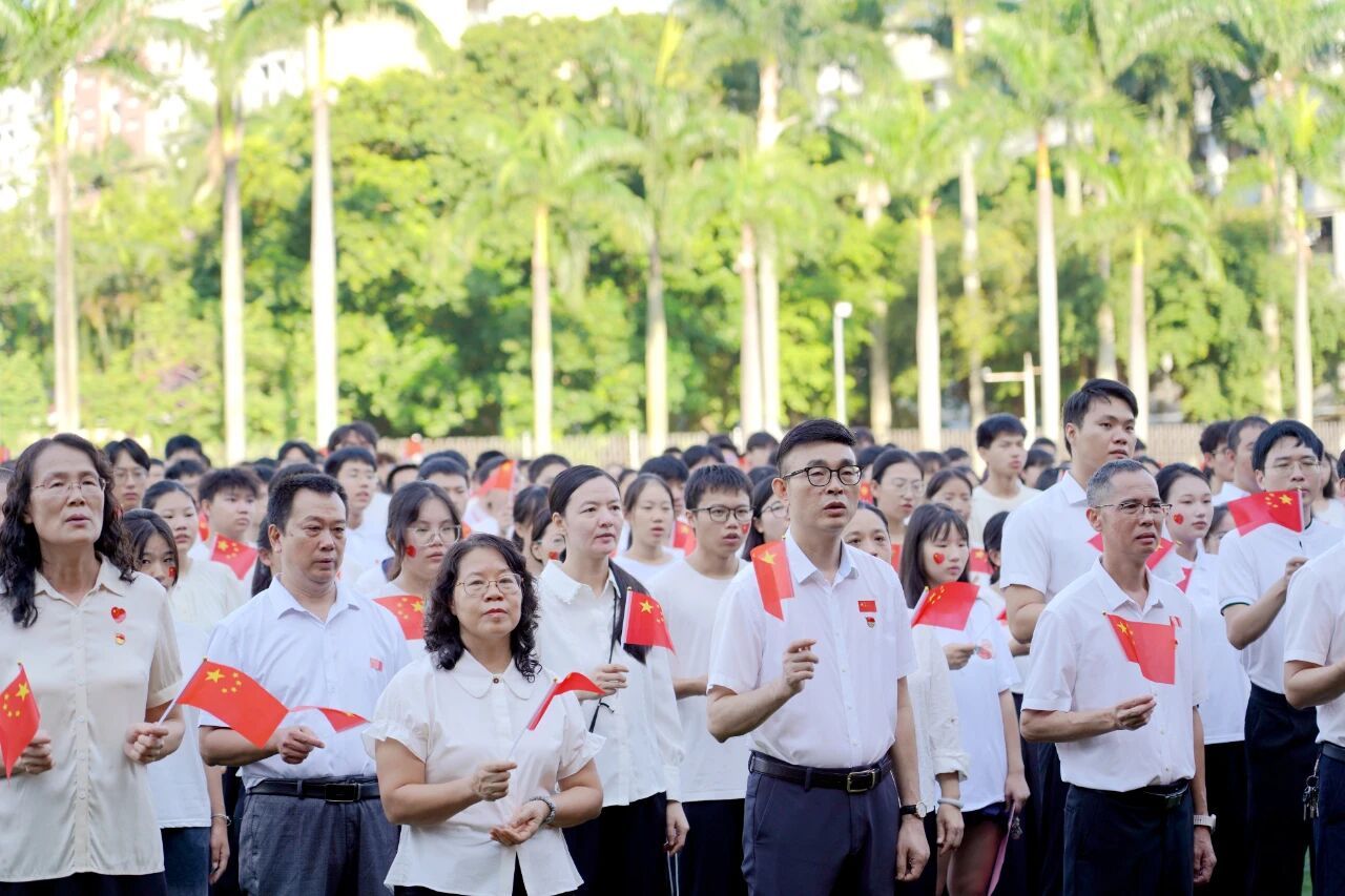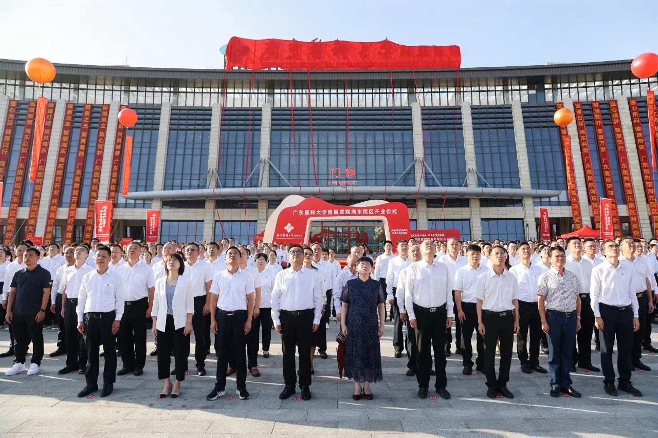 10月1日上午8时,学校在两校区举行升旗仪式,2000余名师生、校友、中小学生代表教职员工家属齐聚田径场、行政广场,为祖国母亲献上最赤诚的生日礼赞,广东医科大学附属医院海东院区今天开业,也举行了升旗仪式。