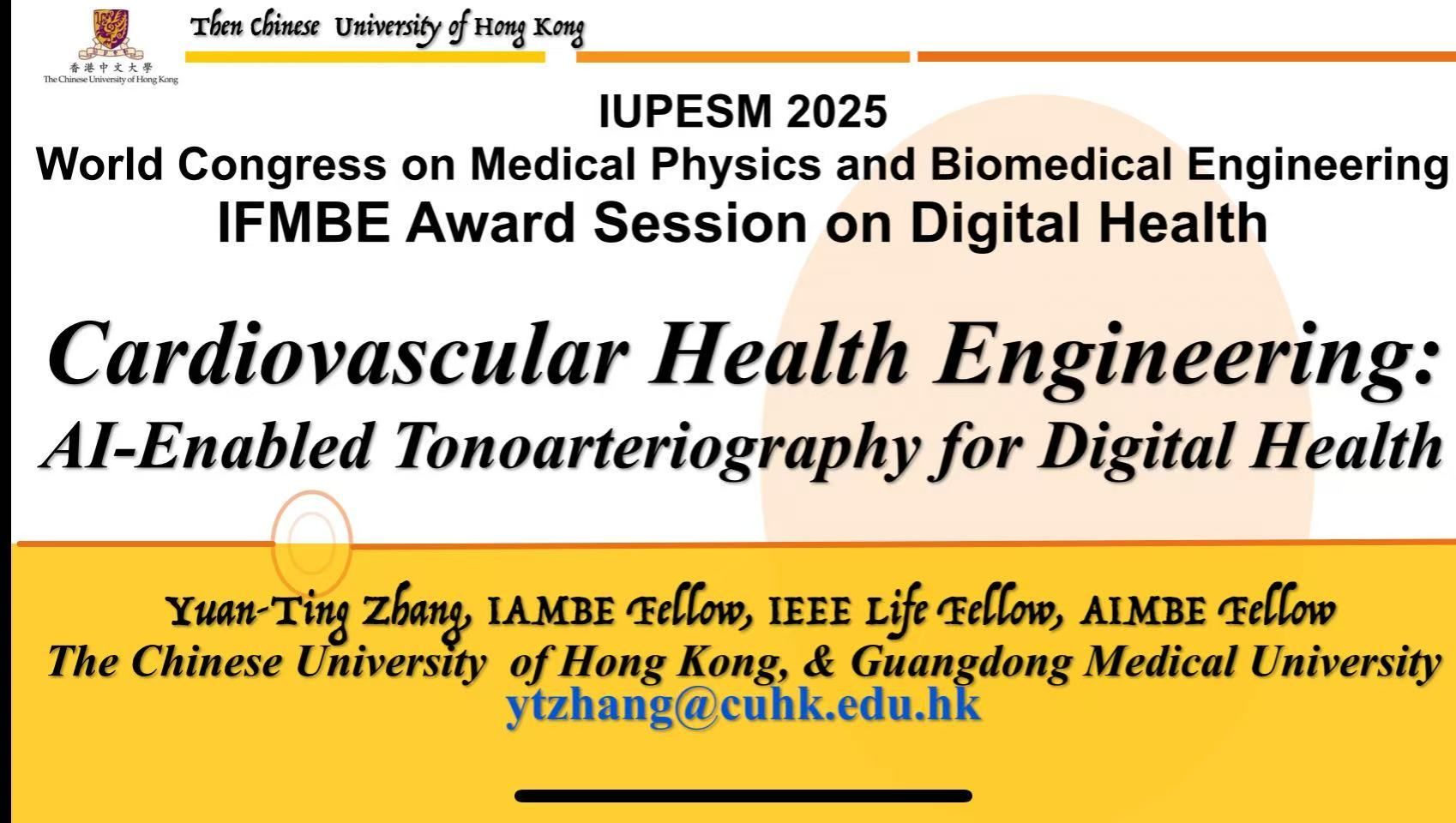 大会期间,作为ifmbe“杰出贡献奖”获得者,张元亭教授还以 “心血管健康工程:用于数字健康的智能血压图(tag)技术”为主题作学术报告。他结合健康科技快速发展、大众对心血管健康管理需求与日俱增的大背景,深入分享了如何设计可穿戴血压图设备及如何通过该创新技术守护大众心血管健康,为与会者带来了一场极具价值的学术盛宴。