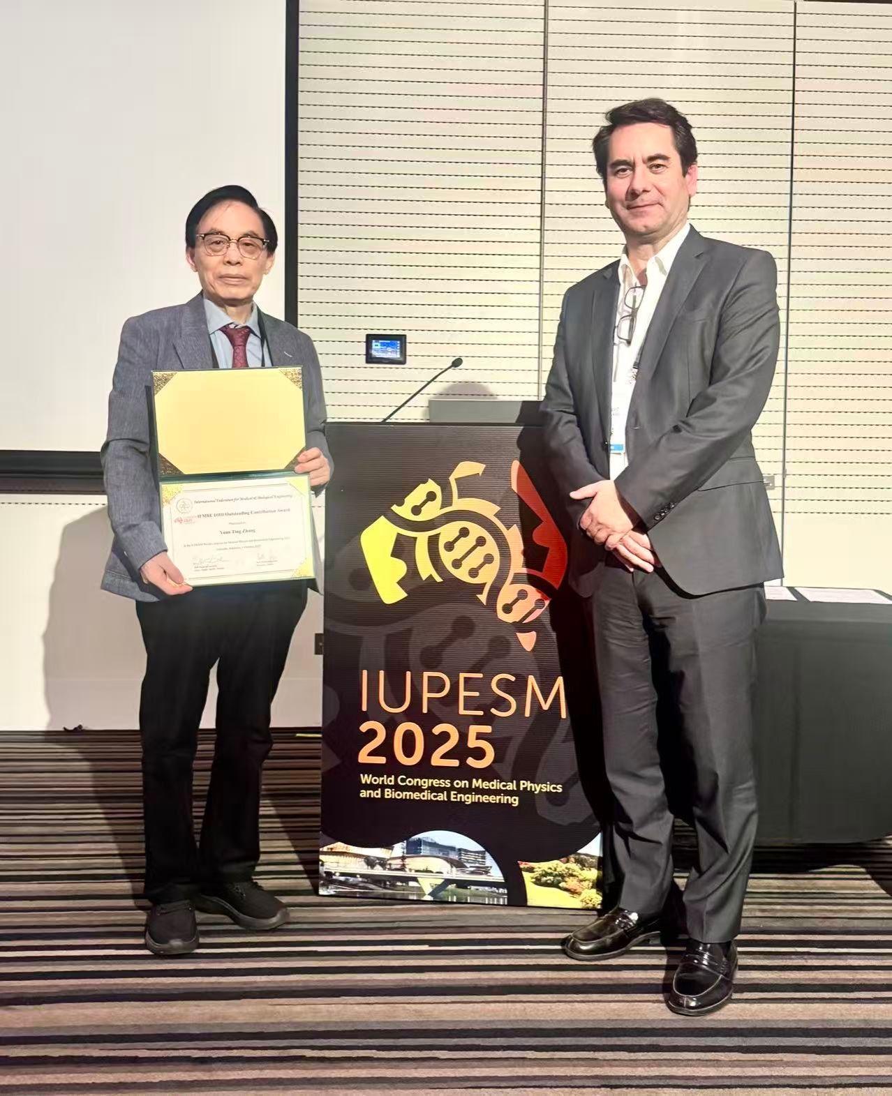 2025年9月30日,2025年世界医学物理与生物医学工程大会(iupesm wc)在澳大利亚盛大召开。会上,我校首席科学家(人工智能与心脑血管工程湾区实验室主任)、香港中文大学研究教授张元亭荣获2025年ifmbe dhd 数字健康“杰出贡献奖”。张元亭教授还是国际医学与生物工程院院士、电气电子工程师学会终身会士(ieee life fellow)、美国医学与生物工程院会士以及亚洲人工智能协会会士,香港工程师协会会士,此次获奖,也让他成为首位斩获该奖项的亚洲学者。