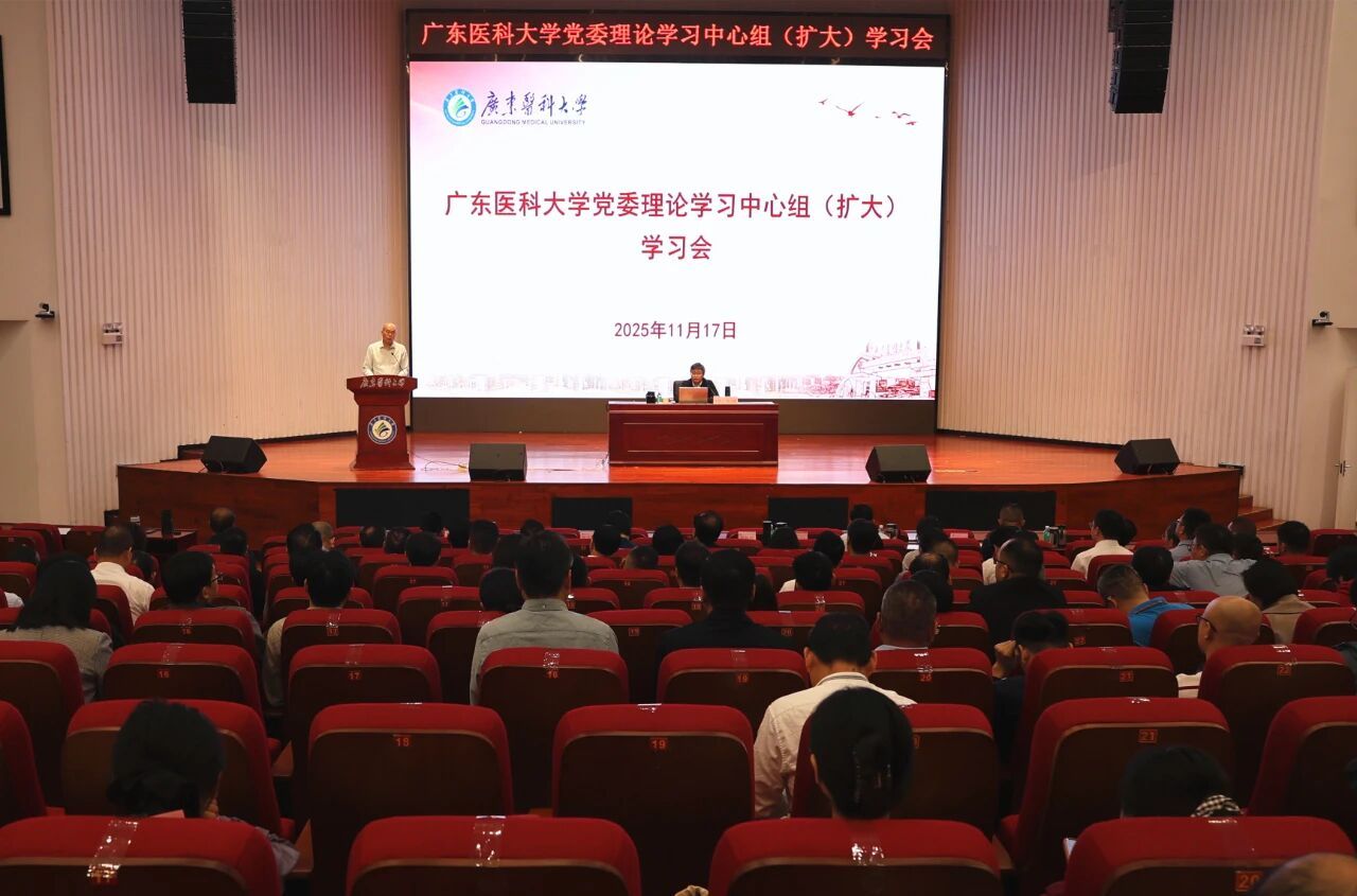 卢景辉指出,深入学习宣传贯彻党的二十届四中全会精神是当前和今后一个时期的重要政治任务,全校各级党组织和师生医护员工要全面学习、深刻领会、持续深化,准确把握党的二十届四中全会精神的丰富内涵和核心要义,切实用全会精神统一思想、指导实践、引领发展。要深刻把握“十四五”时期取得的重大成就和“十五五”时期的目标任务,深刻认识党中央对当前国内外形势的科学判断,把深入学习全会精神与学习习近平总书记重要讲话精神紧密结合,与学校改革发展的实践实际紧密结合,持续抓好学习培训、宣讲宣传和贯彻落实,坚定不移用全会精神统一思想和行动,以党的创新理论为指导加快推进学校高水平大学建设。要深刻把握党中央对教育事业的战略考量,聚焦国家重大战略需求,积极探索一体推进教育科技人才发展的新路径新模式,全面落实立德树人根本任务,深化教育教学改革,增强科技创新能力,全面提升学校核心竞争力,不断提升服务经济社会发展的能力水平,在中国式现代化建设新征程上作出广东医的新贡献。要深刻把握学校改革发展面临的形势任务,紧紧围绕国家发展战略和广东发展需求,结合学校实际,广泛开展调研,认真总结、正视不足,集思广益、充分论证,锚定方向、找准措施,高质量编制学校“十五五”时期发展规划,奋力在高水平大学建设新征程上争创优势、实现突破、开创新局。