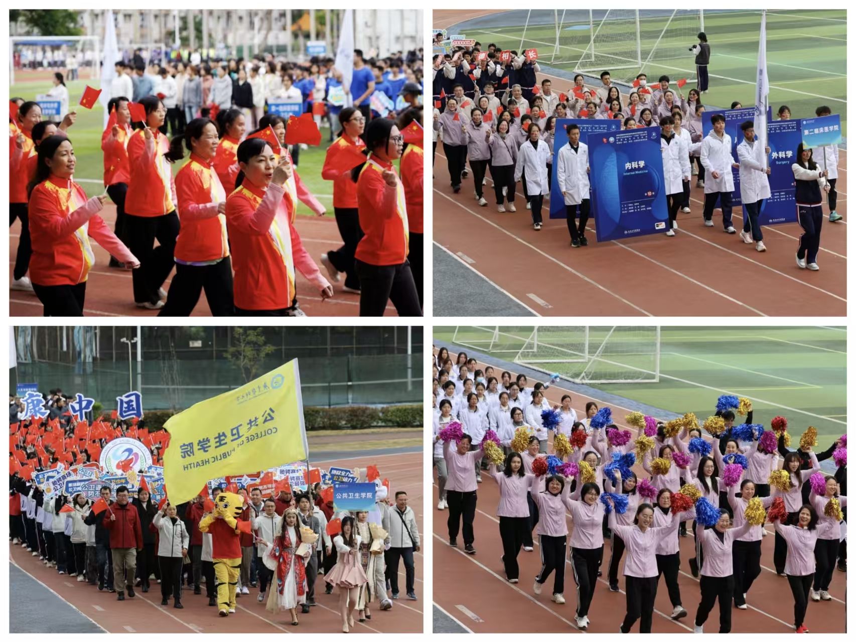 本届运动会竞技水平卓越,捷报频传。公共卫生学院2024级邓轩帆同学在男子100米项目中打破校纪录,医学技术学院2024级徐奕珊同学在女子200米项目中同样创造了新的校纪录。赛场之上,运动员们秉承“立志立德、求真求精”的校训精神,在田径赛道上全力冲刺,在团体项目中凝心聚力。经过激烈角逐,学生组共斩获金牌100余枚,教工组获得金牌50余枚。