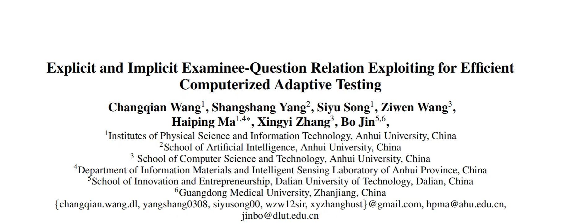 近日,我校特聘教授、广东医科大学健康医疗大数据工程中心主任金博教授以广东医科大学名义撰写了一篇题为“explicit and implicit examinee - question relation exploiting for efficient computerized adaptive testing”的研究论文,被第39届人工智能会议(aaai 2025)录用。