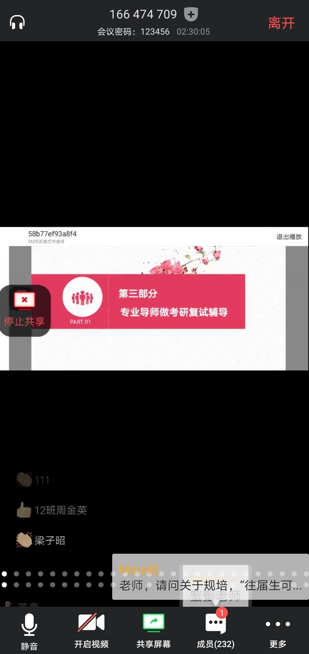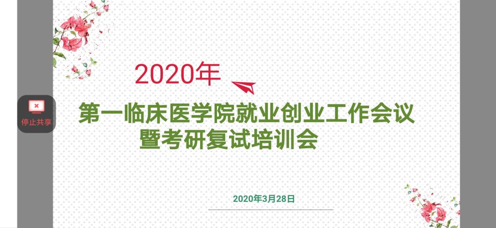为更好地帮助毕业生的升学和就业,助力学院考研学子顺利通过复试,3月28日,第一临床医学院开展线上就业创业工作会议暨考研复试培训会。研究生学院院长唐焕文、第一临床医学院党委书记黄然、院长张良清、副书记陈晓光、我校附属医院培训部部长李书安、姚岚老师,大内科主任周宇,大外科主任柳建军、妇产科主任张颖、儿科主任黄宇戈、2018届学生梁晓杰以及近300名应届考研学子参与会议。会议由第一临床医学院2015级辅导员蔡晓颖主持。