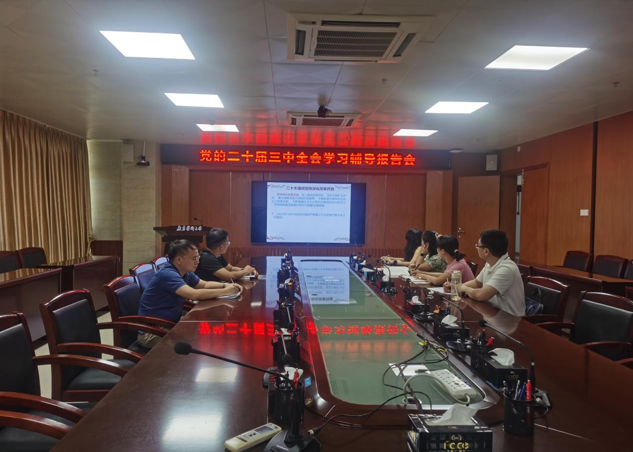 为深入学习贯彻党的二十届三中全会精神,10月9日下午,马克思主义学院党委与药学院党委共同举办党的二十届三中全会学习辅导报告会。主讲嘉宾为省委学习贯彻党的二十届三中全会精神宣讲团成员、华南师范大学马克思主义学院院长关锋教授。讲座由马克思主义学院党委书记茹正开主持,马克思主义学院、药学院领导班子成员、全体教师以及部分同学参加。