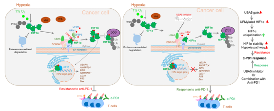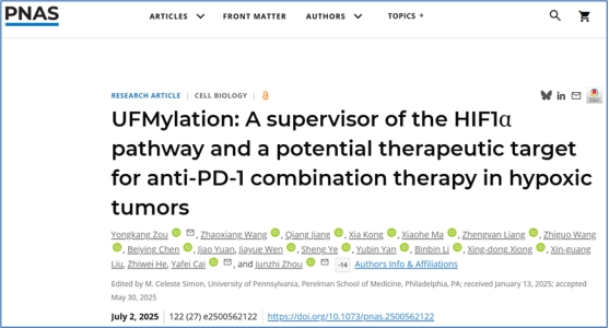 近日,广东医科大学基础医学院周军智课题组与蔡亚非(南京农业大学)、邹永康(深圳湾实验室)合作在国际著名杂志proceedings of the national academy of sciences of the united states of america(pnas)在线发表了肿瘤低氧通路新型调控机制及新型免疫联合治疗的最新研究成果“ufmylation, a supervisor of hif1α pathway and potential therapeutic target for anti-pd-1 combination therapy in hypoxic tumors”。